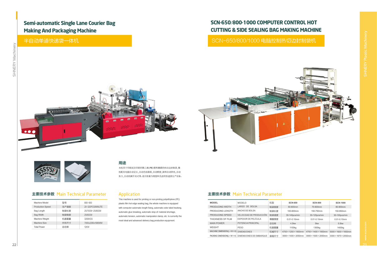 半自動單道快遞袋一體機和SCN-650/800/1000 電腦控制熱切邊封制袋機